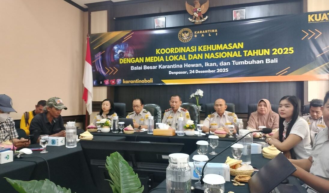 “Prosentase capaian ini naik hingga 203,23% dari target awal,” ujar Kepala Bali Karantina Bali Heru Yuwono dalam kegiatan Refleksi Akhir Tahun 2025 bersama puluhan awak media di Kantor Bali Karantina Bali, Denpasar, Rabu (24/12).