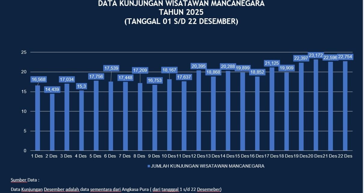 Koranriau.co.id- jumlah kunjungan wisatawan ke Bali(Dok.PT Angkasa Pura) BALI belakangan ini menjadi sorotan lantaran disebut sepi oleh kunjungan turis. PT Angkasa Pura selaku pengelola Bandara I Gusti Ngurah Rai merilis data resmi pada Rabu 24 Desember 2025 jelang perayaan Natal dan Tahun Baru sebanyak 15,9 juta turis datang ke Bali. Menurut Angkasa Pura, data Badan […]